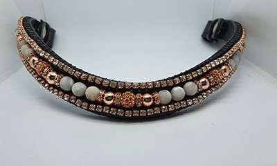 Ljust grå stenpärlor med svag ton mot rosa, Rosédetaljer och bling på sidorna med rosé-infattning.